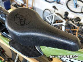 ソフトで快適なサドルはレバーで簡単に高さ調節できるので